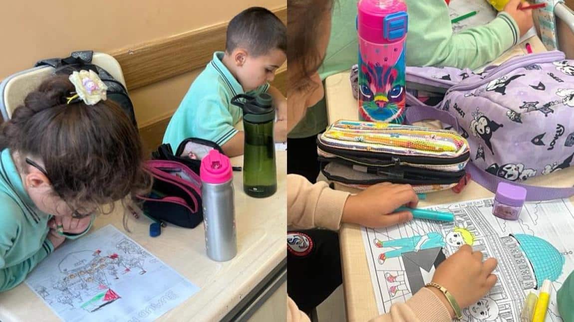 Etkinliğe özellikle 1-A sınıfı öğrencileri yoğun ilgi gösterdi. Minik öğrenciler, barış, kardeşlik ve dayanışma temalı resimler boyayarak duygu ve düşüncelerini renklerle ifade ettiler.